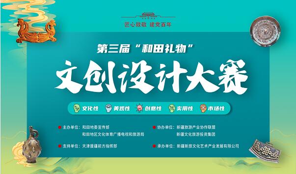 2021年9月20日,以“匠心致敬 建黨百年”為主題的第三屆“和田禮物”文創設計大賽作品征集活動圓滿收官,9月29日,線上投票通道正式開啟,作品分為:“和田禮物”logo作品,文博創意作品。