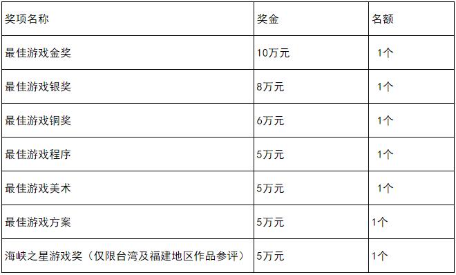 2021年(第十四屆)廈門國際動漫節金海豚游戲開發大賽共設置七個獎項,合計獎金44萬元。具體獎項設置如下: