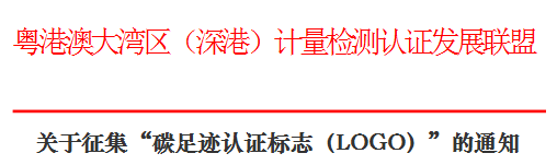 為推進粵港澳大灣區高質量發展,積極應對國際綠色貿易,助力實現碳達峰、碳中和目標,粵港澳大灣區(深港)計量檢測認證發展促進聯盟擬率先在深港開展產品碳足跡標識認證工作,現面向全社會公開征集設計新穎、創意獨特的“碳足跡”認證標志(LOGO)。