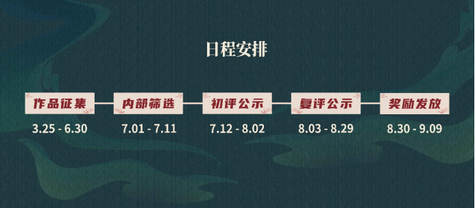 流程分為作品征集、內(nèi)部篩選、初評及公示、復評及公示、獎勵發(fā)放五部分。征集方將對征集的作品進行審核,審核通過的作品進行社會公開投票,再組織專家進行最終評選。最終結(jié)果在官網(wǎng)及官方微博(@百繪國潮大賞)發(fā)布評選結(jié)果。