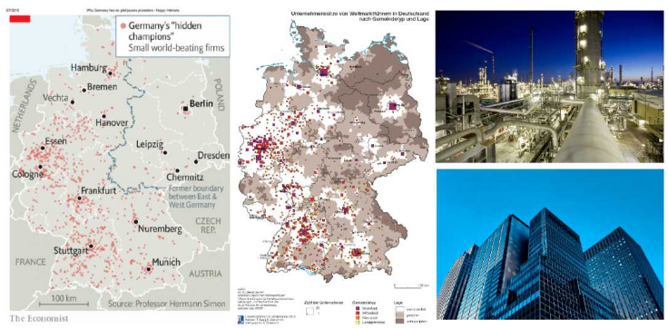 整個德國境內分布著數量眾多的“隱形冠軍”,根據德國聯邦外貿與投資署的數據,德國每100萬人口擁有16家隱形冠軍企業,這一比例為全球最高。