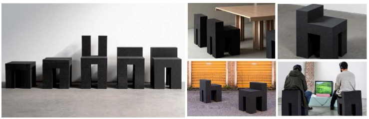 這款系列凳的設計在結構和椅子中取得了很好的平衡,完全采用聚氨酯泡沫UP40作為材料,呈現出四邊形的盒子形狀。乍一看,你會以為是混凝土,然而它卻非常的輕,十分有趣又很友好,將美學、形式、設計融為一體——柔軟的幾何圖案、雕塑似的外觀、耐久性。這款系列凳靠背高低不同,有的高,有的低,甚至有的沒有靠背,更像是一個臺凳,但均能作為凳子來使用。