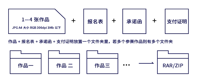 6.每個作品單獨一個文件夾,文件夾內含:參賽作品+《參賽報名表》+版權承諾書+繳費證明(截圖或拍照);無繳費證明視為無效;如多個參賽作品文件,整理放置一個文件夾內打包為RAR或ZIP軟件壓縮包提交;