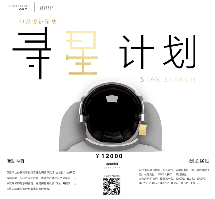 云南山谷里商貿有限責任公司將從所有參賽作品中(包含參加選用一的作品)選定一個作品使用,被選定的作品可獲得酬金 12000元。