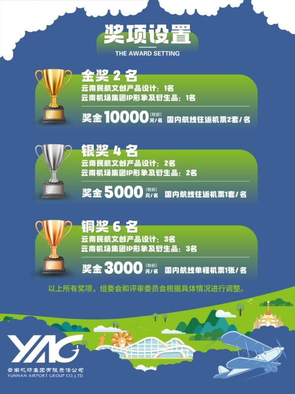 為深入貫徹省委、省政府重大決策部署,落實民航局“十四五”期間“打造中國服務品牌”的要求,云南機場集團有限責任公司以“云南民航100周年及昆明機場轉場10周年”為契機,舉辦“首屆云南民航文創設計大賽”,征集一批立足民航行業、根植云南基因,體現創新性、創造性、創意性的文創作品,助力云南航旅產品融合創新,提升云南民航的品牌影響力和競爭力。