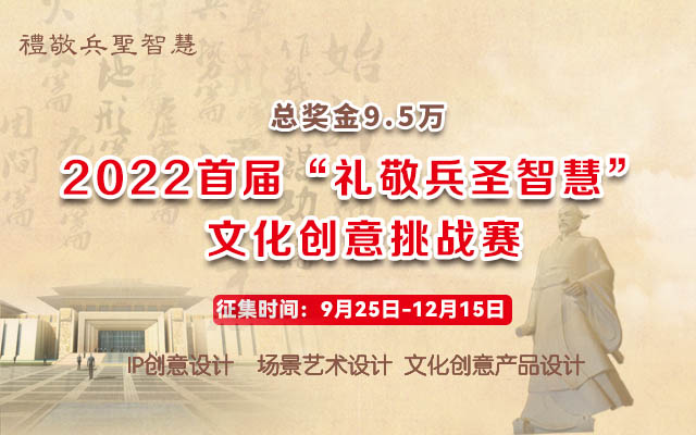 實物作品:鼓勵參賽者提供實物或產品打樣,參賽作品設計費、樣品制作等費用均由參賽者自行承擔。實物作品郵寄至山東省東營市廣饒縣孫子文化園 (郵編257300)劉海燕 (收),請在郵寄件上注明2022首屆“禮敬兵圣智慧”文化創意挑戰賽投稿人聯絡方式。運輸中作品如發生任何意外,大賽組織者不承擔責任。