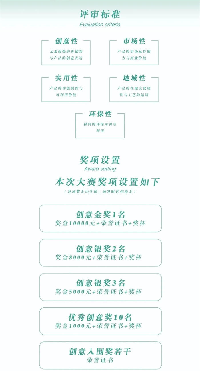 大賽面向全國范圍征集參賽作品,鼓勵所有符合本屆大賽主題及參賽要求的文創(chuàng)產(chǎn)品設(shè)計、開發(fā)的設(shè)計單位、國內(nèi)外工藝美術(shù)大師、產(chǎn)品設(shè)計機構(gòu)、獨立設(shè)計師、創(chuàng)意設(shè)計團隊、相關(guān)院校設(shè)計專業(yè)師生等個人和單位,均可參加活動,選送作品。