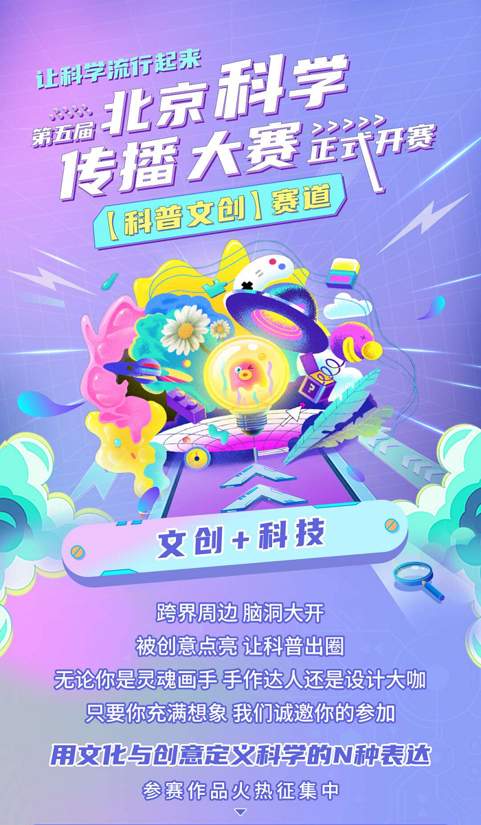 科普文創(chuàng)賽道為作品賽,參賽作品以科技 (科普)設(shè)施、科技成果、科普產(chǎn)品、科普活動等為基本素材,參賽者須設(shè)計出具有首都特色、貼近生活、內(nèi)涵豐富的科普文化創(chuàng)意作品。