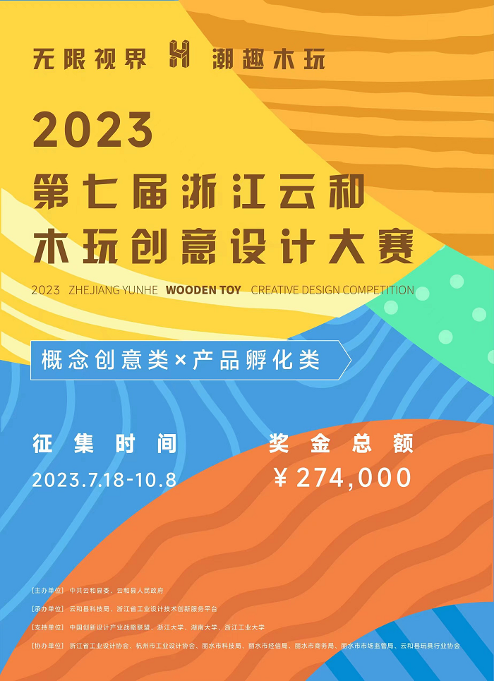 為持續打造全球木玩創制中心,促進云和木玩產業創意設計人才培養,切實提升云和木玩產業研發設計能力,現決定舉辦2023(第七屆)浙江云和木玩創意設計大賽,并向國內外優秀院校、設計機構、獨立設計師發出創意設計邀請。