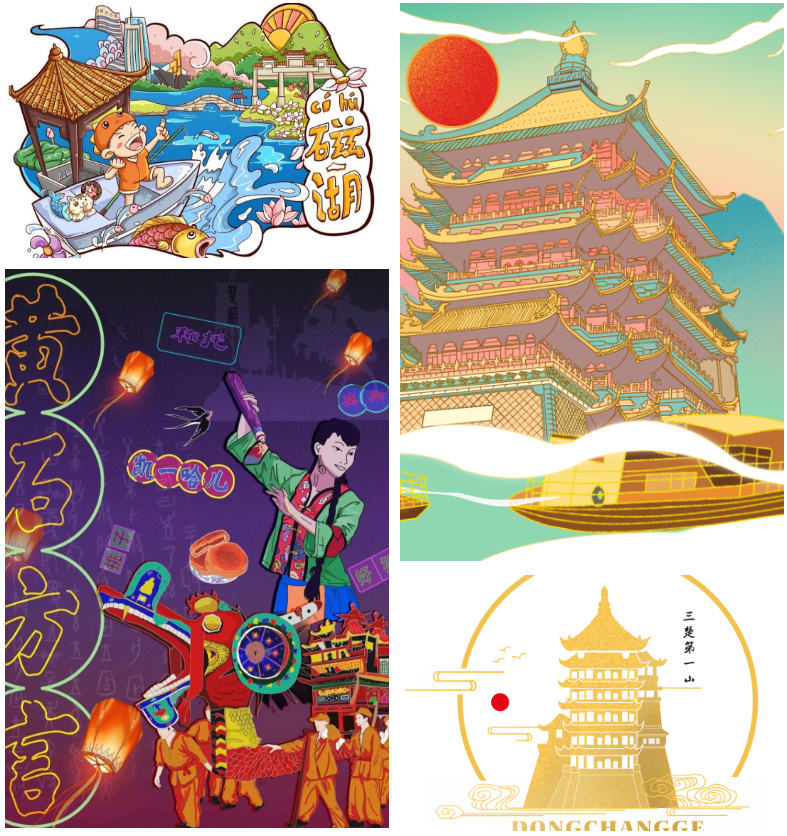 聚焦黃石特色地域文旅資源,創意設計一批原創圖文畫面作品,通過原創手繪、插畫等形式呈現;具有黃石旅游文化元素、地域特色和旅游景區(點)特征的各類地方美食、老字號、旅游紀念品、工藝美術品、文化藝術品、旅游服裝服飾品等包裝設計或創意。