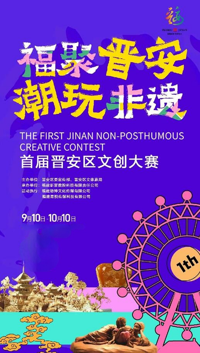 多年來,晉安區非遺系統性保護的驚艷成果。不僅增強文化認同,堅定文化自信,更營造出全社會共同參與非遺保護傳承的濃厚氛圍。發揮了“非遺技藝”服務當代、造福人民的積極作用。同時,為促進“傳統非遺手藝新生”,讓當下的年輕人接受“非遺”,認同“非遺”,喜愛“非遺”,推廣“非遺”,挖掘“非遺文化新內涵”,發掘“非遺”和“文創”雙料人才,9月10日起,“福聚晉安,潮玩非遺”首屆晉安區文創大賽將正式全面面向社會進行作品征集。