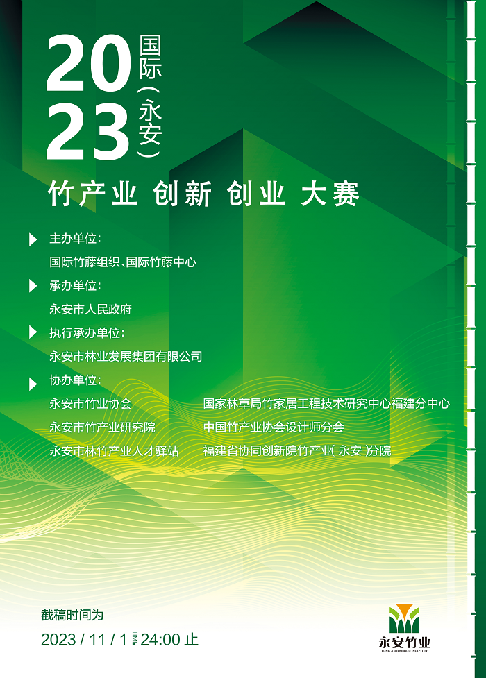 2、《2023國際(永安)竹產業創新創業大賽報名表》《2023國際(永安)竹產業創新創業大賽項目計劃書》發送到大賽官方郵箱ibpdc@qq.com,相關文件可在微信公眾號(今日永安網)下載。