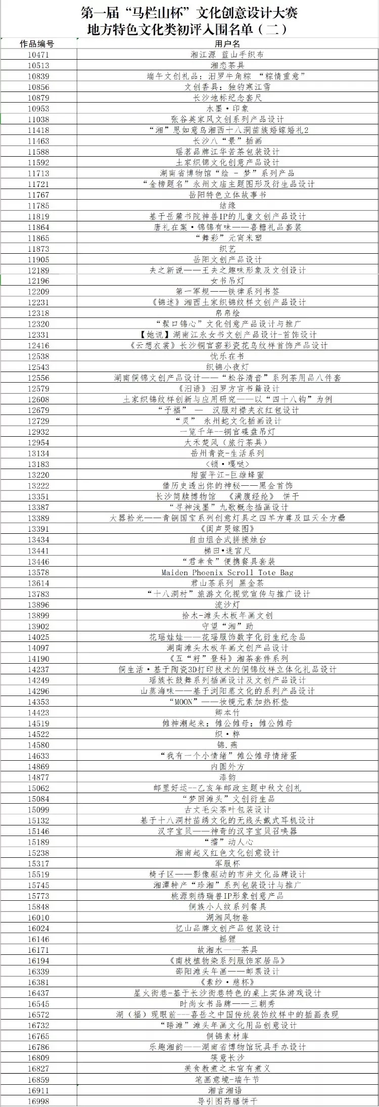附:第一屆“馬欄山杯”文化創意設計大賽地方特色文化類初評入圍名單(二)