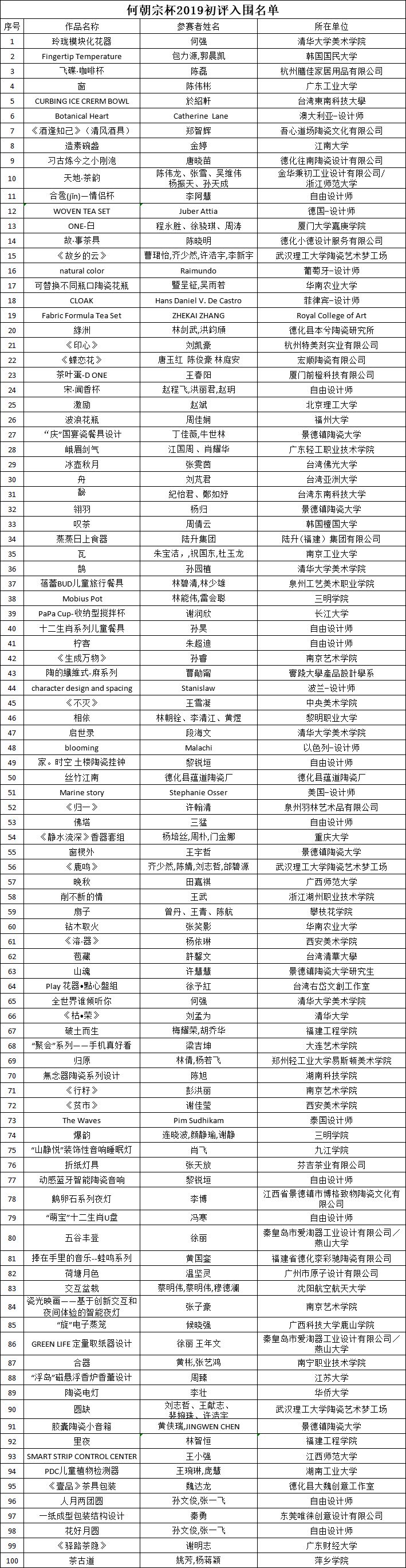 在組委會的動態(tài)監(jiān)督下,經(jīng)過緊張的初評活動,大賽從4082件公眾報名作品中共選拔出100件入圍作品,現(xiàn)將名單公布如下。另附10件備選作品名單,若入圍作品出現(xiàn)爭議或參賽者個人原因不參與復評,復評資格將花落備選作品。備選作品同樣獲得優(yōu)秀獎證書。