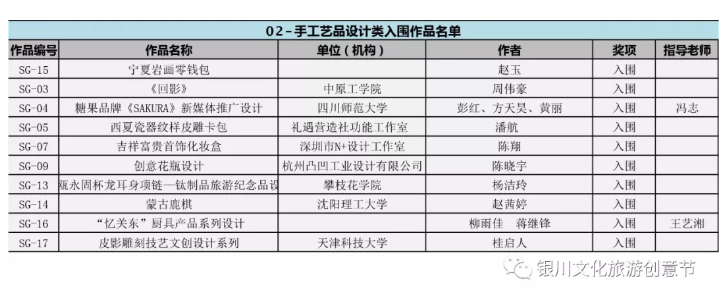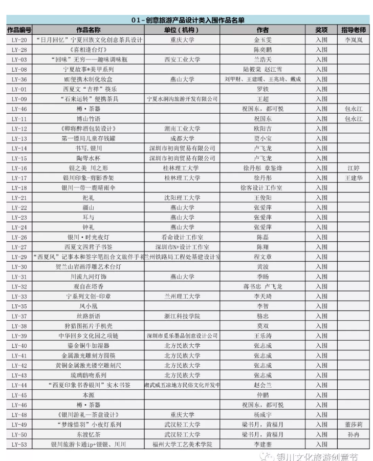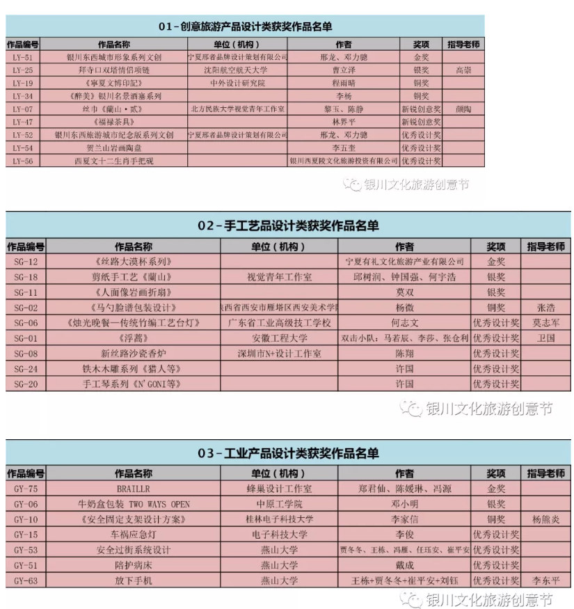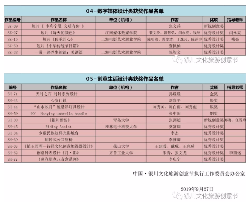 各位參加本次2019年第三屆中國·銀川文化旅游創意產品設計大賽的寶寶們,你們期待的獲獎名單終于在今日公布啦!快來看看下面的榜單上有沒有你們的作品呢?