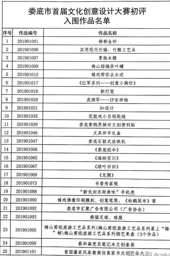 附件:婁底市首屆文化創意設計大賽初評入圍作品名單